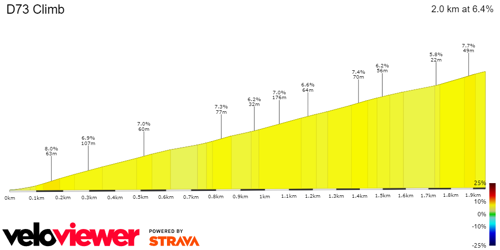 Néanmoins, il faudra attendre de rentrer dans les 50 derniers kilomètres pour s'attaquer aux choses sérieuses avec pour commencer le col de Néronne (3.8 kilomètres à 9.1 %). Une difficulté que les moins bons grimpeurs chercheront à anticiper dans la vallée du Mars.